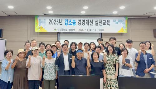 [½Åµ¿¾Æ¹æ¼Û °æ³²ÇÔ¾È=À̽ŵ¿±âÀÚ] ÇԾȱºÀº Áö³­ 19ÀÏ ³ó¾÷ÀÎ Àü»ê ±³À°Àå 3Ãþ¿¡¼­ 2025³â °­¼Ò³ó °æ¿µ°³¼± ½Çõ ±³À° ¼ö·á½ÄÀ» °³ÃÖÇß´Ù. À̹ø ±³À°Àº Áö³­ 7¿ù 8ÀϺÎÅÍ 8¿ù 19ÀϱîÁö ÃÑ 15ȸ, 60½Ã°£¿¡ °ÉÃÄ ÁøÇàµÆÀ¸¸ç, ±³À°»ý 40¸íÀÌ Âü¿©ÇØ »ý¼ºÇü ÀΰøÁö´É ¡¦