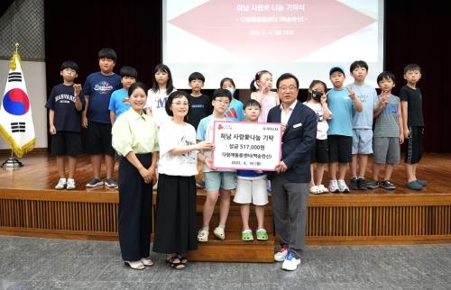 [½Åµ¿¾Æ¹æ¼Û Çϳ²½Ã=À̽ŵ¿±âÀÚ] Áö³­ 18ÀÏ ´ÙÇÔ²²µ¹º½¼¾ÅÍ(¹é¼ÛÇѽÅ)´Â ÇÁ¸®¸¶ÄÏ Çà»ç¿¡¼­ ¸¶·ÃÇÑ ¼º±Ý 517õ¿øÀ» Çϳ²½Ã¿¡ ±âŹÇß´Ù. Àü´ÞµÈ ¼º±ÝÀº Çкθð¿Í ¾Æµ¿µéÀÌ Á÷Á¢ Âü¿©ÇÑ ÇÁ¸®¸¶ÄÏÀ» ÅëÇØ Á¶¼ºµÈ °ÍÀ¸·Î, °ü³» Àú¼Òµæ ¾Æµ¿À» µ½±â À§ÇØ ±âºÎµÆ´Ù. À̳¯ ±â¡¦