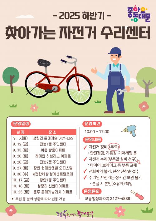 [½Åµ¿¾Æ¹æ¼Û µ¿´ë¹®±¸=À̽ŵ¿±âÀÚ] ¼­¿ï µ¿´ë¹®±¸´Â ÀÚÀü°Å ÀÌ¿ë Ȱ¼ºÈ­¿Í ±³Å뺹Áö Çâ»óÀ» À§ÇØ 9¿ùºÎÅÍ 10¿ù ¸»±îÁö ¾à 2°³¿ù°£ ¡®Ã£¾Æ°¡´Â ÀÚÀü°Å ¼ö¸®¼¾ÅÍ¡¯¸¦ ¿î¿µÇÑ´Ù°í ¹àÇû´Ù. ±¸´Â ¿ÃÇØ »ó¹Ý±â¿¡µµ °ü³» Áֹμ¾ÅÍ 10°÷ ¹× °øµ¿ÁÖÅà 1°÷¿¡¼­ ã¾Æ°¡´Â ÀÚÀü°Å¡¦