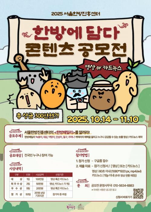 [½Åµ¿¾Æ¹æ¼Û µ¿´ë¹®±¸=À̽ŵ¿±âÀÚ] ¼­¿ï µ¿´ë¹®±¸´Â Çѹæ»ê¾÷Ư±¸ ¼­¿ï¾à·É½Ã¿¡ À§Ä¡ÇÑ ¼­¿ïÇѹæÁøÈï¼¾ÅÍ(¼­¿ï¾à·É½ÃÇÑÀǾà¹Ú¹°°ü)°¡ ¡®2025 Çѹ濡 ´ã´Ù ÄÜÅÙÃ÷ °ø¸ðÀü¡¯À» °³ÃÖÇÑ´Ù°í ¹àÇû´Ù. À̹ø °ø¸ðÀüÀº ¿ÃÇØ »õ·Ó°Ô ź»ýÇÑ Ä³¸¯ÅÍ ¡®ÇѹæÆÐ¹Ð¸®(³ì¿ëÀÌ, ´ë°¨,¡¦