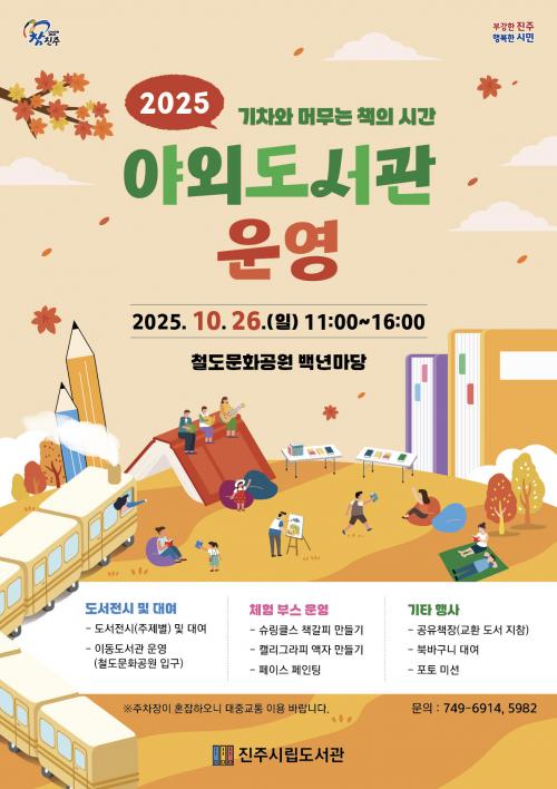 [½Åµ¿¾Æ¹æ¼Û °æ³²ÁøÁÖ=³²±Ã¿µ±â±âÀÚ] ÁøÁֽø³µµ¼­°üÀº 10¿ù 26ÀÏ ÁøÁֽà °­³²µ¿ ¼ÒÀç öµµ¹®È­°ø¿ø ³» ¹é³â¸¶´ç¿¡¼­ ¡®2025³â ¾ß¿Üµµ¼­°ü ¿î¿µ¡¯ Çà»ç¸¦ ÁøÇàÇÑ´Ù°í ¹àÇû´Ù. À̳¯ ¿ÀÀü 11½ÃºÎÅÍ ¿ÀÈÄ 4½Ã±îÁö ¿î¿µµÇ´Â ¾ß¿Üµµ¼­°üÀº ¡®°¡À»¡¯, ¡®¸ôÀÔ¡¯, ¡®Èú¸µ¡¯ µî¡¦