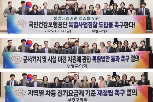 [½Åµ¿¾Æ¹æ¼Û ÀÎõ=À±¹Î½Ä±âÀÚ]ºÎÆò±¸ÀÇȸ(ÀÇÀå ¾È¾Ö°æ)´Â 10¿ù 24ÀÏ ¿­¸° Á¦272ȸ ÀÓ½Ãȸ 2Â÷ º»È¸ÀÇ¿¡¼­ ¡®±¹¹Î°Ç°­º¸Çè°ø´Ü Ưº°»ç¹ý°æÂû ±ÇÇÑ ºÎ¿© Ã˱¸ °áÀǾȡ¯(Á¤À¯Á¤ÀÇ¿ø ¹ßÀÇ), ¡®±º»ç±âÁö ¹× ½Ã¼³ ÀÌÀü Áö¿ø¿¡ °üÇÑ Æ¯º°¹ý¾È Åë°ú Ã˱¸ °áÀǾȡ¯(¼Õ´ëÁßÀÇ¿ø ¿Ü¡¦