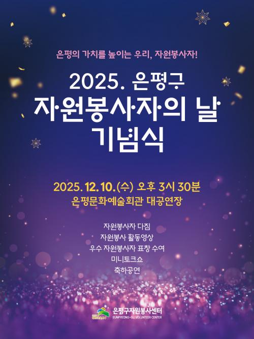 [½Åµ¿¾Æ¹æ¼Û ÀºÆò±¸=À̽ŵ¿±âÀÚ] ¼­¿ï ÀºÆò±¸´Â ¿À´Â 10ÀÏ ÀºÆò¹®È­¿¹¼úȸ°ü ´ë°ø¿¬Àå¿¡¼­ ¡®2025 ÀÚ¿øºÀ»çÀÚÀÇ ³¯ ±â³ä½Ä¡¯À» °³ÃÖÇÑ´Ù°í ¹àÇû´Ù. À̹ø Çà»ç´Â 12¿ù 5ÀÏ ÀÚ¿øºÀ»çÀÚÀÇ ³¯À» ¸Â¾Æ Áö¿ª»çȸ¸¦ À§ÇØ Çå½ÅÇØ ¿Â ÀÚ¿øºÀ»çÀڵ鿡°Ô °¨»ç¸¦ ÀüÇÏ°í ³ª´®°ú ¡¦