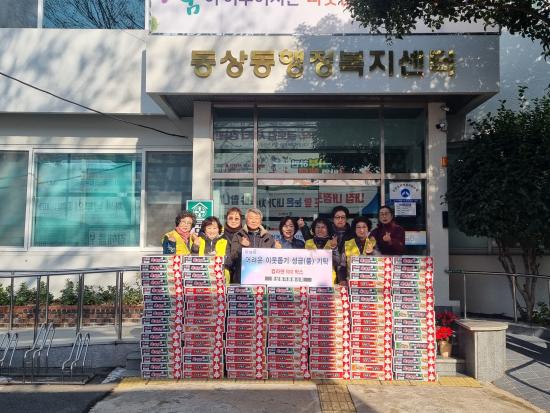 [½Åµ¿¾Æ¹æ¼Û °æ³²±èÇØ=³²±Ã¿µ±â±âÀÚ] µ¿»óµ¿ÀÚ¿øºÀ»çȸ°¡ Áö³­ 12¿ù 16ÀÏ µ¿»óµ¿ÇàÁ¤º¹Áö¼¾Å͸¦ ¹æ¹®ÇØ °ü³» ¾î·Á¿î ÀÌ¿ôµé¿¡°Ô Àü´ÞÇØ´Þ¶ó¸ç ÄŶó¸é 100¹Ú½º¸¦ ±âŹÇß´Ù. µ¿»óµ¿ÀÚ¿øºÀ»çȸ´Â ¹«·á±Þ½Ä Á¦°ø ¹× µ¹º½ºÀ»ç µî ¿©·¯ Áö¿ª»çȸ ºÀ»çȰµ¿°ú ¾î·Á¿î ÀÌ¿ôµé¡¦