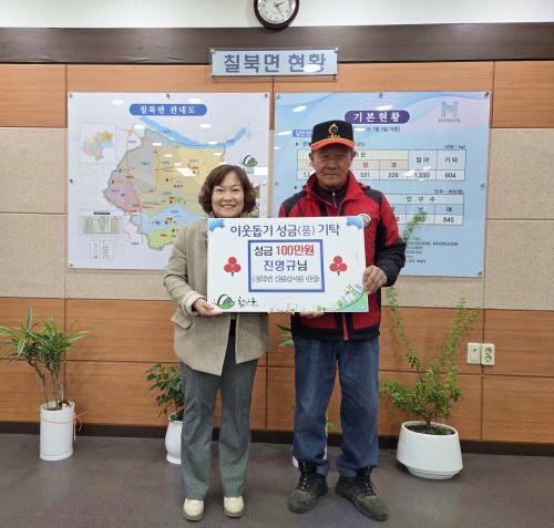 [½Åµ¿¾Æ¹æ¼Û °æ³²ÇÔ¾È=À̽ŵ¿±âÀÚ] ÇԾȱº Ä¥ºÏ¸éÀº Áö³­ 7ÀÏ, Ä¥ºÏ¸é »êºÒ°¨½Ã¿ø ¹ÝÀåÀ¸·Î ±Ù¹« ÁßÀÎ Áø¿µ±Ô ¾¾°¡ Áö¿ªÀÇ ¾î·Á¿î ÀÌ¿ôÀ» µ½±â À§ÇØ ¼º±Ý 100¸¸ ¿øÀ» ±âŹÇß´Ù°í ¹àÇû´Ù. Áø¿µ±Ô ¾¾´Â ¸Å³â ²ÙÁØÈ÷ ¼º±ÝÀ» ±âŹÇÏ¸ç °æÁ¦ÀûÀ¸·Î ¾î·Á¿òÀ» °Þ°í ÀÖ´Â ÀÌ¡¦