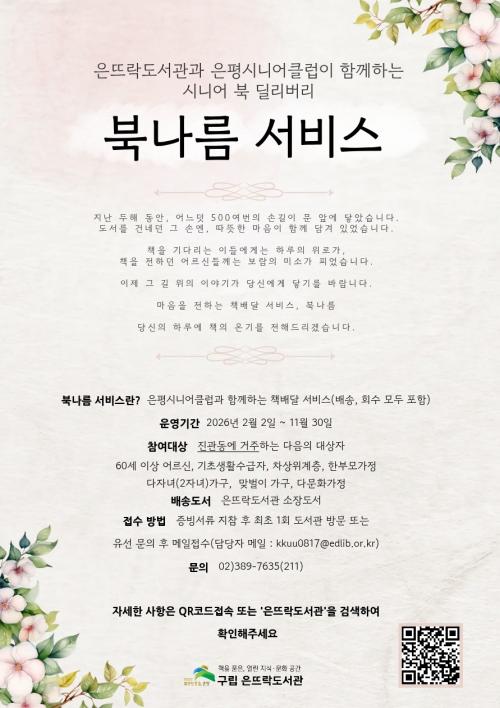 [½Åµ¿¾Æ¹æ¼Û ÀºÆò±¸=À̽ŵ¿±âÀÚ] ¼­¿ï ÀºÆò±¸´Â ±¸¸³Àº¶ß¶ôµµ¼­°ü¿¡¼­ ¿î¿µÇÏ´Â µµ¼­ ¹è´Þ ¼­ºñ½º ¡®ºÏ³ª¸§¡¯À» ÀÌ´ÞºÎÅÍ È®´ë ¿î¿µÇÑ´Ù°í ¹àÇû´Ù. ¡®ºÏ³ª¸§¡¯Àº µµ¼­°ü ¹æ¹®ÀÌ ¾î·Á¿î Áø°üµ¿ Áֹο¡°Ô Ã¥À» °¡Á¤À¸·Î ¹è´ÞÇÏ´Â ¼­ºñ½º·Î, ÀºÆò½Ã´Ï¾îŬ·´°ú ¿¬°èÇØ Áö¡¦
