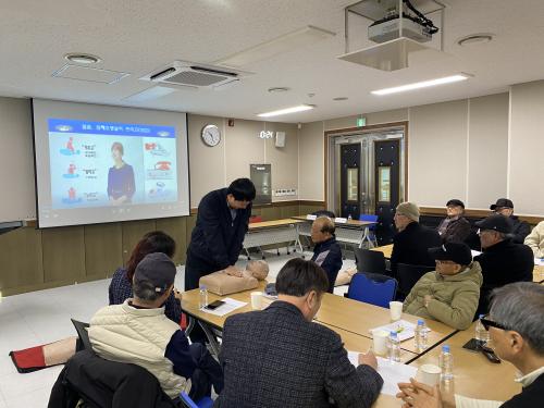 [½Åµ¿¾Æ¹æ¼Û Çϳ²½Ã=À̽ŵ¿±âÀÚ] Çϳ²½Ã ¹Ì»ç2µ¿ ÁÖ¹ÎÀÚġȸ´Â Áö³­ 10ÀÏ, µ¿ ÇàÁ¤º¹Áö¼¾ÅÍ¿¡¼­ Á¤±âȸÀǸ¦ ¸¶Ä£ ÈÄ À§¿øµéÀ» ´ë»óÀ¸·Î ¡®½ÉÆó¼Ò»ý¼ú(CPR) ¹× ÀÀ±Þóġ ±³À°¡¯À» ½Ç½ÃÇß´Ù°í ¹àÇû´Ù. À̹ø ±³À°Àº Áö¿ª »çȸÀÇ ¸®´õÀÎ ÁÖ¹ÎÀÚÄ¡ À§¿øµéÀÌ ÀÏ»ó»ýȰ Áß ¹ß¡¦