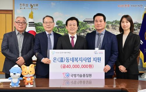 [½Åµ¿¾Æ¹æ¼Û °æ³²ÁøÁÖ=³²±Ã¿µ±â±âÀÚ] ±¹¹æ±â¼úǰÁú¿øÀº Áö³­ 17ÀÏ ½Ãû ±â¾÷ÀÎÀÇ ¹æ¿¡¼­ Áö¿ª»çȸ ¾î·Á¿î ÀÌ¿ôÀ» µ½±â À§ÇØ ¼º±Ý 4000¸¸ ¿øÀ» ÁøÁֽú¹ÁöÀç´Ü(ÀÌ»çÀå À̼º°©)¿¡ ±âŹÇß´Ù. À̹ø ±âŹÀº ±¹¹æ±â¼úǰÁú¿øÀÌ Áö¿ª»çȸ¿Í »ó»ýÇÏ´Â °ø°ø±â°üÀ¸·Î¼­ »çȸÀû Ã¥¡¦