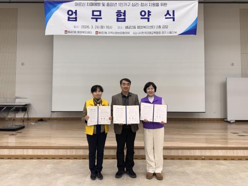 [½Åµ¿¾Æ¹æ¼Û ½ÃÈï½Ã=À̽ŵ¿±âÀÚ] ½ÃÈï½Ã ¹è°ð2µ¿ ÇàÁ¤º¹Áö¼¾ÅÍ´Â Áö³­ 3¿ù 24ÀÏ ÇàÁ¤º¹Áö¼¾ÅÍ 2Ãþ °­´ç¿¡¼­ ¹è°ð2µ¿ Áö¿ª»çȸº¸ÀåÇùÀÇü, (»ç)Çѱ¹Ä¡¸Å±³À°Çùȸ °æ±â ½ÃÈïÁöºÎ¿Í ¡®¾î¸£½Å Ä¡¸Å¿¹¹æ ¹× ÁßÀå³â 1ÀÎ °¡±¸ Á¤¼­ Áö¿øÀ» À§ÇÑ ¾÷¹«Çù¾à¡¯À» ü°áÇß´Ù. À̹ø¡¦