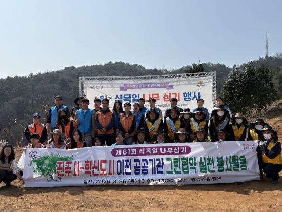 [½Åµ¿¾Æ¹æ¼Û °æ³²ÁøÁÖ=±è¸í¼ö±âÀÚ] ÁøÁֽô 26ÀÏ ¸Á°æ°ø¿ø ÀÏ¿ø¿¡¼­ Çõ½Åµµ½Ã ÀÌÀü °ø°ø±â°ü ÀÓÁ÷¿øµé°ú ÇÔ²² ¡®2026³â Á¦1ȸ ±×¸° Çù¾à ½Çõ ºÀ»çȰµ¿¡¯À» ÆîÃÆ´Ù. À̹ø Ȱµ¿Àº Á¦81ȸ ½Ä¸ñÀÏÀ» ¸Â¾Æ ÁøÇàµÈ ³ª¹«½É±â Çà»ç¿Í ¿¬°èÇØ ÃßÁøµÆÀ¸¸ç, ź¼ÒÁ߸³ ½Çõ°ú ¹Ì¡¦
