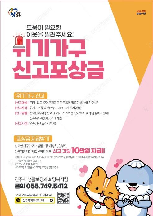 [½Åµ¿¾Æ¹æ¼Û °æ³²ÁøÁÖ=³²±Ã¿µ±â±âÀÚ] ÁøÁֽô 2026³âºÎÅÍ ÁÖº¯ ÀÌ¿ô Áß µµ¿òÀÌ ÇÊ¿äÇÑ À§±â°¡±¸¸¦ Á¶±â¿¡ ¹ß±¼Çϰí Áö¿øÇϱâ À§ÇÑ ¡®À§±â°¡±¸ ½Å°í Æ÷»ó±Ý Áö¿ø»ç¾÷¡¯À» ´ëÆø °­È­ÇÑ´Ù°í ¹àÇû´Ù. º¹Áö»ç°¢Áö´ë ÇØ¼Ò¿¡ ´ëÇÑ ½Ã¹ÎµéÀÇ Àû±ØÀûÀÎ Âü¿©¸¦ À¯µµÇϱâ À§ÇØ,¡¦