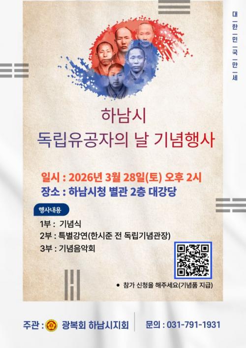 [½Åµ¿¾Æ¹æ¼Û Çϳ²½Ã=À̽ŵ¿±âÀÚ] ±¤º¹È¸ Çϳ²½ÃÁöȸ´Â ¿À´Â 3¿ù 28ÀÏ(Åä) ¿ÀÈÄ 2½Ã, Çϳ²½Ãû º°°ü 2Ãþ ´ë°­´ç¿¡¼­ ¡®Çϳ²½Ã µ¶¸³À¯°øÀÚÀÇ ³¯¡¯ ±â³ä½ÄÀ» °³ÃÖÇÑ´Ù°í ¹àÇû´Ù. À̹ø Çà»ç´Â Áö¿ª Ãâ½Å µ¶¸³¿îµ¿°¡µéÀÇ ¼þ°íÇÑ Èñ»ý°ú Çå½ÅÀ» ±â¾ïÇϰí, ½Ã¹Îµé°ú ÇÔ²² ³ª¡¦