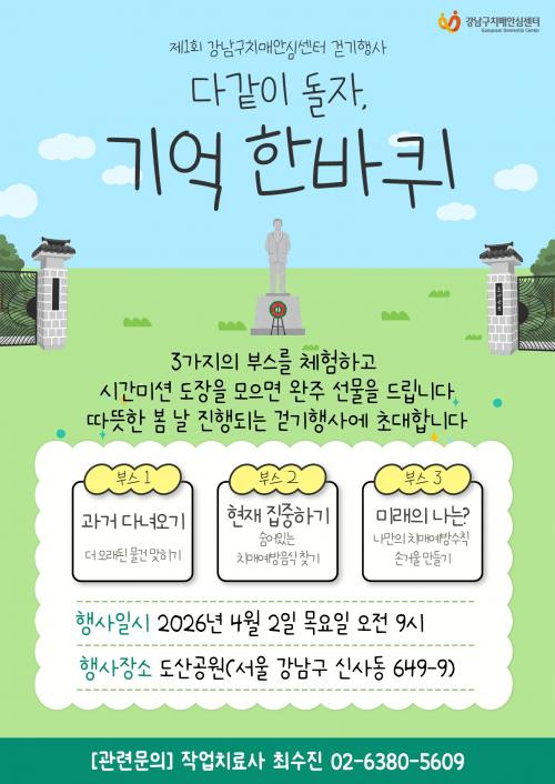 [½Åµ¿¾Æ¹æ¼Û °­³²±¸=À̽ŵ¿±âÀÚ] ²ÞÀÌ ¸ðÀÌ´Â µµ½Ã, ¹Ì·¡¸¦ ±×¸®´Â °­³²±¸°¡ 4¿ù 2ÀÏ ¿ÀÀü 9½ÃºÎÅÍ ³· 12½Ã±îÁö µµ»ê°ø¿ø¿¡¼­ ±¸¹Î 100¿© ¸í°ú ÇÔ²² ¡®°­³²±¸Ä¡¸Å¾È½É¼¾ÅÍ °È±â´ëȸ, ´Ù°°ÀÌ µ¹ÀÚ, ±â¾ï ÇѹÙÄû¡¯¸¦ ¿¬´Ù. À̹ø Çà»ç´Â °È±â¸¦ ÅëÇØ ½ÅüȰµ¿À» ´Ã¸®°í ¡¦
