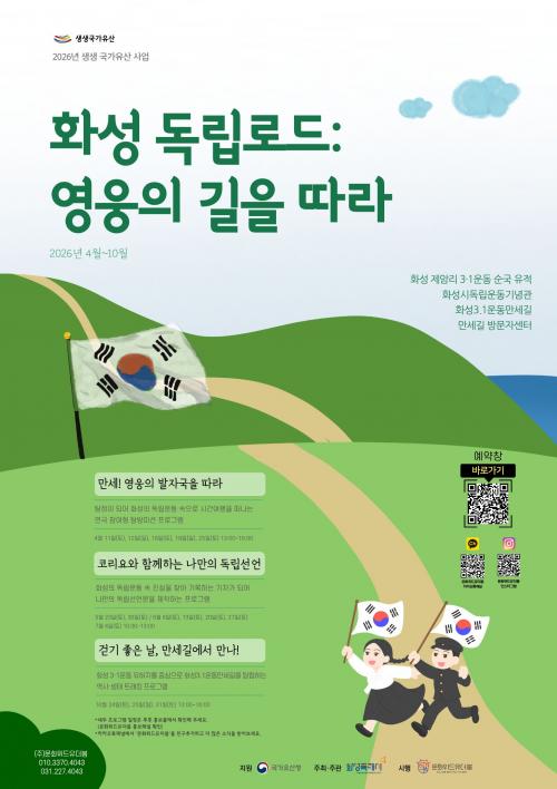 [½Åµ¿¾Æ¹æ¼Û=ÀÌÀçö±âÀÚ] È­¼ºÆ¯·Ê½Ã°¡ ¿À´Â 4¿ùºÎÅÍ 10¿ù±îÁö È­¼º Á¦¾Ï¸® 3¡¤1¿îµ¿ ¼ø±¹ À¯ÀûÁö¿Í È­¼º 3¡¤1¿îµ¿ ¸¸¼¼±æ ÀÏ´ë¿¡¼­ ¡®2026 ¿ì¸®°íÀå ±¹°¡À¯»ê Ȱ¿ë»ç¾÷(»ý»ý¹®È­Àç)¡¯ üÇè ÇÁ·Î±×·¥ 3°³¸¦ ¿î¿µÇÑ´Ù°í ¹àÇû´Ù. »ý»ý¹®È­Àç´Â Áö¿ª ¹®È­À¯»êÀ» ÀÌ¿ëÇØ ¹®È­¡¦