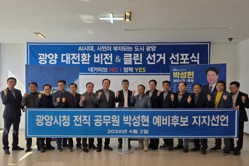 [½Åµ¿¾Æ¹æ¼Û Àü³²±¤¾ç=¹Ú±¤¿Á±âÀÚ] ±¤¾ç½Ã ÀüÁ÷ °ø¹«¿ø 40¿© ¸íÀº 2ÀÏ ¿ÀÀü 10½Ã ¹Ú¼ºÇö ¿¹ºñÈĺ¸ ¼±°Å»ç¹«¼Ò¿¡¼­ ¹Ú Èĺ¸¿¡ ´ëÇÑ ÁöÁö¸¦ ¼±¾ðÇϸç, Çö ½ÃÁ¤¿¡ ´ëÇÑ °­µµ ³ôÀº ºñÆÇ°ú ÇÔ²² ±¤¾çÀÇ ±Ùº»ÀûÀÎ º¯È­¸¦ Ã˱¸Çß´Ù. À̵éÀº ¡°Áö³­ 4³â°£ ±¤¾ç½Ã´Â °ÑÀ¸·Î´Â¡¦