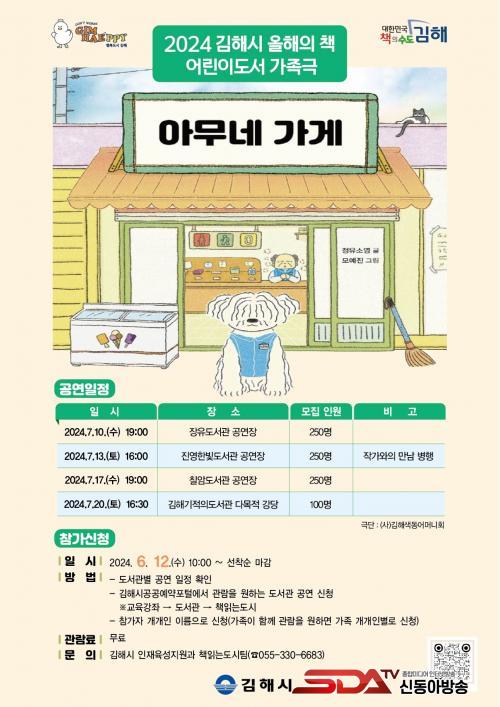 [½Åµ¿¾Æ¹æ¼Û´º½º=ÀÌÁ¶Àº±âÀÚ] ±èÇØ½Ã´Â 2024 ±èÇØ½Ã ¿ÃÇØÀÇ Ã¥ ¾î¸°À̵µ¼·Î ¼±Á¤µÈ ¡®¾Æ¹«³× °¡°Ô¡¯¸¦ °¢»öÇÑ °¡Á·±ØÀ» 7¿ù ÃÑ 4ȸ¿¡ °ÉÃÄ °ø¿¬ÇÑ´Ù°í 12ÀÏ ¹àÇû´Ù.