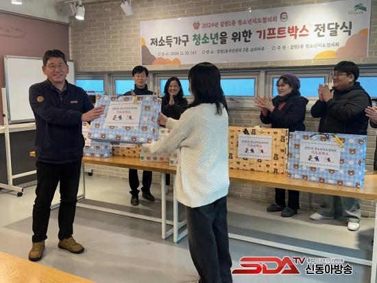 û¼Ò³âÁöµµÇùÀÇȸ´Â Àú¼Òµæ°¡±¸ û¼Ò³âµéÀÌ ´õ ³ªÀº ȯ°æ¿¡¼ Çо÷°ú »ýȰÀ» À̾ ¼ö ÀÖµµ·Ï Áö¿øÇϱâ À§ÇØ ±âÇÁÆ®¹Ú½º¸¦ ¸¶·ÃÇß´Ù. ±âÇÁÆ®¹Ú½º¿¡´Â ¸ÓÇ÷¯¿Í Àå°©, »ýÇÊǰÀÌ ´ã¾ÒÀ¸¸ç Àú¼Òµæ°¡±¸ û¼Ò³â 8¸í¿¡°Ô Àü´ÞÇß´Ù.