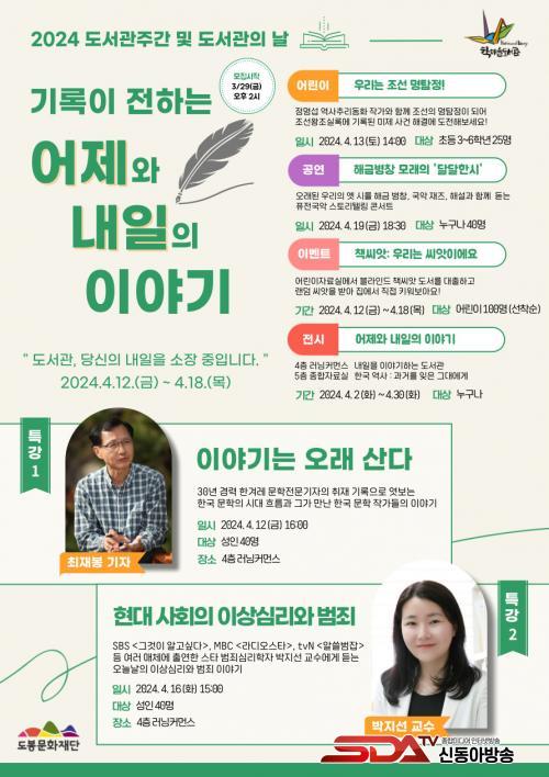 °ø¿¬¿¡´Â 4¿ù 19ÀÏ ÇØ±Ý º´Ã¢ÀÇ(¿¬ÁÖÀÚ: ±Ý¸ð·¡) ¡®´Þ´ÞÇѽÃ:½ºÅ丮ÅÚ¸µ Ç»Àü±¹¾Ç with ÀçÁ°¡, Àü½Ã¿¡´Â 4¿ù 2ÀÏ~4¿ù 30ÀÏ ¡®³»ÀÏÀ» À̾߱âÇÏ´Â µµ¼°ü¡¯°ú ¡®Çѱ¹ ¿ª»ç: °ú°Å¸¦ ÀØÀº ±×´ë¿¡°Ô¡¯°¡ ÁغñµÅ ÀÖ´Ù.
