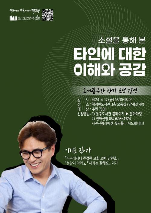 Çà»ç ù³¯ÀÎ 12ÀÏ ¿ÀÈÄ 4½Ã 30ºÐ Ã¥Á¤¿ø 3Ãþ¿¡¼ ¡®À̱âÈ£ ÀÛ°¡ ÃÊû Ư°¡¯ÀÌ ¿¸°´Ù. ÀÌ ÀÛ°¡ÀÇ ÀÛǰÀ» Åä´ë·Î ÇÑ ºÏ Å¥·¹À̼Ç(Ã¥ ¼±Åÿ¡ ¾î·Á¿òÀ» ´À³¢´Â µ¶ÀÚ¸¦ À§ÇØ »ç¼°¡ ÁÖÁ¦¸¦ ¼±Á¤ÇØ µ¶ÀÚ¿Í Ã¥À» ¿¬°áÇØ ÁÖ´Â ¼ºñ½º)µµ 1Ãþ¿¡¼ ÁøÇàµÈ´Ù. ȯ°æÀ» ÁÖÁ¦·Î ÇÑ µ¿ÈÀÎÇü±Ø°ú ¸¶Å©¶ó¸Þ ۸µ¡¤°ÆÁ¤ ÀÎÇü ¸¸µé±â üÇè ¹× ´Ù¾çÇÑ ºÎ´ë Çà»çµµ ÆîÃÄÁø´Ù.
