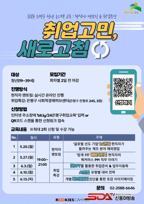 ±³À° ´ë»óÀº 19¼¼ºÎÅÍ 39¼¼±îÁö û³âÀÌ´Ù. ±³À°°úÁ¤Àº ÁýÁß ½ºÇÇÄ¡ ±³À° 3ȸ, ÇöÁ÷ÀÚ ¸àÅ丵 2ȸ, AI Ãë¾÷Ư° 2ȸ, À̹ÌÁö ¸ÞÀÌÅ· 1ȸ µî ÃÑ 4°³ ºÐ¾ß 8ȸ·Î ±¸¼ºµÈ´Ù. °¢ ¼ö¾÷Àº ¿ÀÈÄ 7½ÃºÎÅÍ 9½Ã±îÁö ÀºÆò±¸ »çȸÀû°æÁ¦ Çãºê¼¾ÅÍ¿¡¼ ÁøÇàµÇ¸ç, ÇöÁ÷ÀÚ ¸àÅ丵Àº ½Ç½Ã°£ ¿Â¶óÀÎÀ¸·Î ÁøÇàµÈ´Ù.