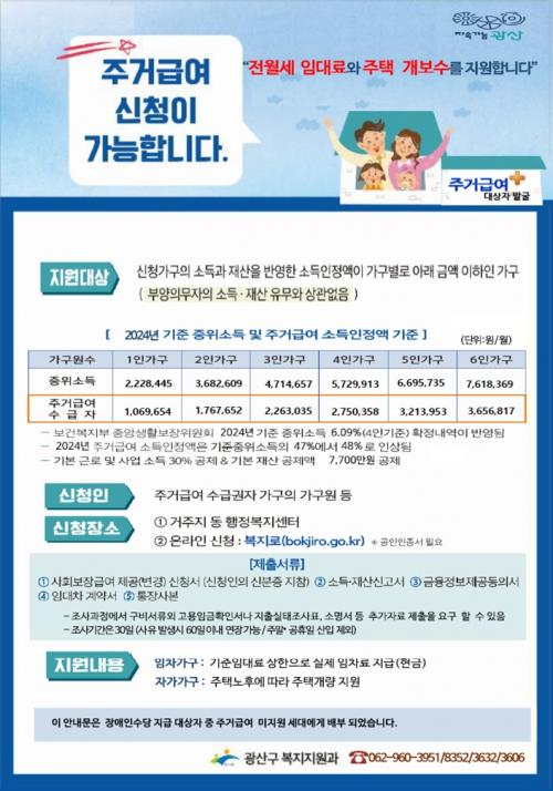 Áְű޿©´Â Ãë¾à°èÃþÀÇ ÁÖ°Å ¾ÈÁ¤°ú ÁÖ°Å ¼öÁØ Çâ»óÀ» À§ÇØ Àü¿ù¼¼ µî ÀÓÂ÷·á¸¦ º¸Á¶Çϰųª ÁÖÅà °³º¸¼ö¸¦ Áö¿øÇÏ´Â »ç¾÷À¸·Î, ±¤»ê±¸´Â ÇöÀç 235¾ï ¿øÀÇ ¿¹»êÀ» ÅõÀÔÇØ 1¸¸ 1,027°¡±¸¿¡ ¸ÂÃãÇü Áְű޿©¸¦ Áö±ÞÇϰí ÀÖ´Ù.