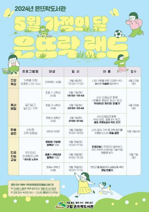 ¡®Àº¶ß¶ô ·£µå¡¯´Â ³»´Þ 4ÀϺÎÅÍ 18ÀϱîÁö ÁøÇàµÈ´Ù. 5¿ù 4ÀÏ¿¡´Â ³ª¿Í °¡Á· °Ç°À» ì±â´Â ¿Ã¹Ù¸¥ ½Ä½À°üÀ» ¾Ë¾Æº¸±â À§ÇÑ ¡®°¡Á·À» À§ÇÑ ¿À·ÔÇÑ ³ªÀÇ ½Ä»ç¡¯ Ư°À» ÁøÇàÇÑ´Ù.
