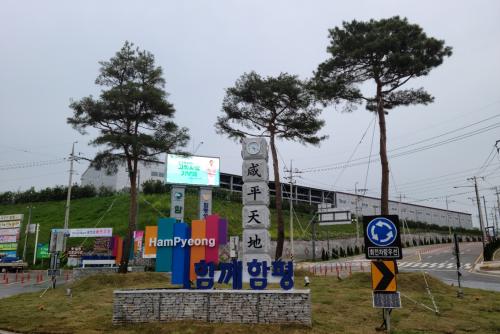 µ¿ÇÔÆò IC¸¦ ºüÁ®³ª¿À¸é ù´«¿¡ ¡®ÇÔ²² ÇÔÆò¡¯À̶ó´Â ÇÔÆò°ü±¤ ½½·Î°Ç ¹× ij¸¯ÅÍ ¹®ÀÚ Á¶Çü¹°°ú ÇÔ²², ȸÀü±³Â÷·Î Áß¾Ó¿¡ ¡®ÇÔÆòõÁö ¸¸´ë¹ø¿µ¡¯À» »õ±ä 6m ³ôÀÌÀÇ ½Ã°èžÀÌ ÀÚ¸®ÇØ °ü±¤°´µéÀÇ ½Ã¼±À» »ç·ÎÀâ´Â´Ù.