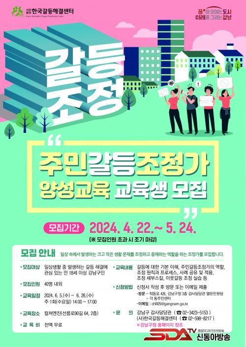 °¥µî ÇØ°á ¹æ¹ýÀ» ¹è¿ì°í ½ÍÀº 19¼¼ ±¸¹ÎÀÌ¸é ´©±¸³ª ½ÅûÇÒ ¼ö ÀÖ´Ù. ±³À°Àº 6¿ù 5ÀϺÎÅÍ 26ÀϱîÁö ¸ÅÁÖ ¼ö¿äÀÏ ¿ÀÈÄ 2½Ã~5½Ã ÄÃÃÄ¿£Áø(¼±¸ª·Î90±æ 64)¿¡¼ ÀÌ·ïÁø´Ù. (»ç)Çѱ¹°¥µîÇØ°á¼¾ÅÍ ¼Ò¼Ó °¥µî°ü¸® Àü¹®°¡°¡ °¥µî¿¡ ´ëÇÑ ±âº» ÀÌÇØ, Áֹΰ¥µîÁ¶Á¤°¡ÀÇ ¿ªÇÒ, Á¶Á¤ ¿øÄ¢°ú ÇÁ·Î¼¼½º, »ç·Ê °øÀ¯ ¹× Àû¿ë, ÀÌ¿ô °¥µî Á¶Á¤ ¼¼ºÎ ½ºÅ³ ¹× ½Ç½À µîÀ» ¾Ë·ÁÁØ´Ù. ±³À° ÀÏÁ¤ ¹× ¸ðÁý¿¡ °üÇÑ ÀÚ¼¼ÇÑ ³»¿ëÀº ±¸Ã» ȨÆäÀÌÁöÀÇ °í½Ã°ø°í¸¦ ÂüÁ¶Çϰųª °¨»ç´ã´ç°ü ¿¸°¹Î¿øÆÀ(¢Ï02-3423-5153)·Î ¹®ÀÇÇÏ¸é µÈ´Ù.