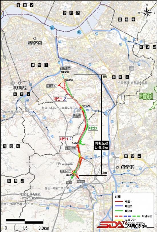 2016³âµµ¿¡ ¹Î°£ÅõÀÚ»ç¾÷À¸·Î Á¦¾ÈµÈ ¼º³²~°³² ¹ÎÀÚ°í¼Óµµ·Î´Â ¼º³² ±ÝÅ䵿¿¡¼ °³² °³Æ÷µ¿°ú ÀÏ¿øµ¿À¸·Î À̾îÁö´Â ±æÀÌ 9.5km ±¸°£, Â÷Æø 3.25mÀÇ ¼ÒÇüÂ÷ Àü¿ë °í¼Óµµ·Î·Î °èȹµÆ´Ù. ÀÌ µµ·ÎÀÇ °³Æ÷ IC´Â ¾çÀç´ë·Î·Î, ÀÏ¿ø IC´Â ¿µµ¿´ë·Î·Î ¿¬°áµÇ¸ç Â÷ÈÄ µ¿ºÎ°£¼±µµ·Î ÁöÇÏÈ ±¸°£°ú Ç帪·Î¿¡¼ ´ÜÀýµÈ ¿ëÀμ¿ï°í¼Óµµ·Î¿Í ¿¬°èÇØ ¼¿ï°ú ¼öµµ±Ç µ¿³²ºÎ¸¦ ³²ºÏÀ¸·Î ÀÕ´Â »õ·Î¿î ±³ÅëÃàÀ» ¸¸µå´Â »ç¾÷ÀÌ´Ù.