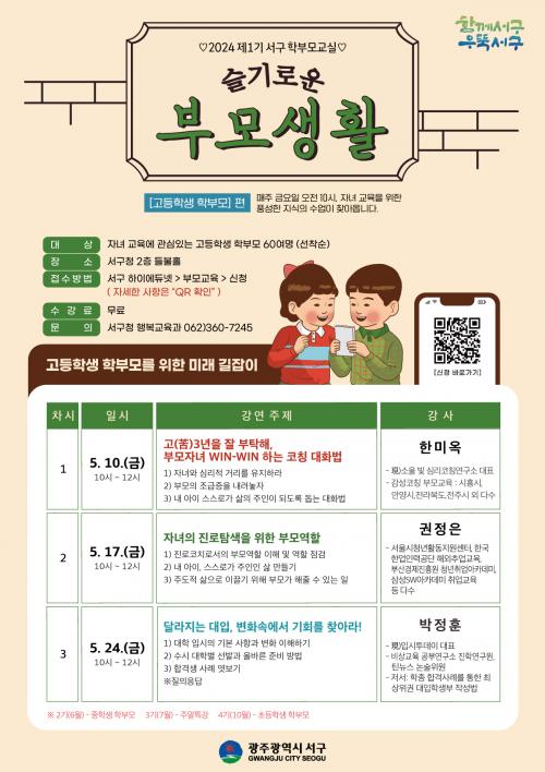 ƯÈ÷ 5¿ù 10ÀϺÎÅÍ ¸ÅÁÖ ±Ý¿äÀÏ ¿ÀÀü 10½Ã ¼±¸Ã» µéºÒȦ¿¡¼ ÁøÇàµÇ´Â¡®Á¦1±â °íµîÇлý Çкθ𸦠À§ÇÑ ¹Ì·¡ ±æÀâÀÌ¡¯¿¡¼´Â °¢ ºÐ¾ßÀÇ Àü¹®°¡µéÀÌ ¡ã°í(ÍÈ)3³âÀ» Àß ºÎÅ¹ÇØ, ºÎ¸ðÀÚ³à win-winÇÏ´Â ÄÚĪ ´ëȹý ¡ãÀÚ³àÀÇ Áø·Î Ž»öÀ» À§ÇÑ ºÎ¸ð ¿ªÇÒ ¡ã´Þ¶óÁö´Â ´ëÀÔ, º¯È ¼Ó¿¡¼ ±âȸ¸¦ ã¾Æ¶ó! ¶ó´Â ÁÖÁ¦·Î °íµîÀڳฦ µÐ Çкθðµé¿¡°Ô ½ÉÃþ °ÀǸ¦ Á¦°øÇÒ °èȹÀÌ´Ù.