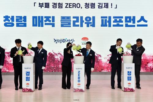 À̾î Á¤¼ºÁÖ ±èÁ¦½ÃÀå, ÀÌÂùÁØ ºÎ½ÃÀå, ±¹´Ü¼ÒÀå µîÀÌ Âü¿©ÇØ °íÀ§°øÁ÷ÀÚÀÇ ¼Ö¼±¼ö¹üÀ¸·Î ½ÃÀÇ Ã»·Å ¹®È¸¦ È·ÁÇÏ°Ô ²É ÇÇ¿ì°Ú´Ù´Â Àǹ̷Π½ÃÈÀÎ ¹éÀÏÈ« Ⱥп¡ ¹°À» ÁÖ¾î û·Å ºñÀü(ºÎÆÐ °æÇè Zero, û·Å ±èÁ¦) û·ÅÀÇ ²ÉÀÌ ÇǾ´Â ¡¯Ã»·Å ¸ÅÁ÷ Çöó¿ö ÆÛÆ÷¸Õ½º¡®¸¦ ¼±º¸¿´´Ù.
