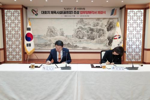 À̳¯ Çù¾àÀº ¢ßÀ¯ÁØ»ê¾÷ÀÌ ¾à 1,500¾ï ¿øÀ» ÅõÀÚÇØ, ´çÁø½Ã ´ëÈ£Áö¸é ÀÏ´ë 50¸¸Æò ºÎÁö¿¡ Á¶¼ºÇÒ ¿¹Á¤ÀΠüÀ°½Ã¼³(°ñÇÁÀå)ÀÇ ¿øÈ°ÇÑ ÃßÁøÀ» À§ÇØ ÁøÇàµÆ´Ù.