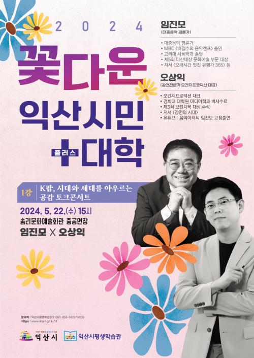 ÀÍ»ê½Ã´Â '2024³â ²É´Ù¿î ÀÍ»ê½Ã¹Î+ ´ëÇÐ'À» ¿À´Â 11¿ù±îÁö 6ȸÂ÷·Î ÁøÇàÇϸç, »çȸ °¢ ºÐ¾ßÀÇ ¸í»çµéÀ» ÃÊÃ»ÇØ °­Á¸¦ ¿î¿µÇÒ ¿¹Á¤ÀÌ´Ù.