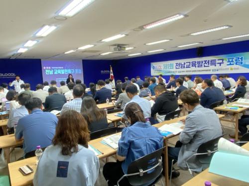 ¡®Áö¿ªÀÎÀç ¾ç¼º°ú Àü³²±³À°¹ßÀüƯ±¸¡¯¸¦ ÁÖÁ¦·Î ¿­¸° À̳¯ Æ÷·³¿¡´Â Àü³²µµÀÇȸ, µµ±³À°Ã» ´ã´çÀÚ, 7°³ ½Ã¹üÁö¿ª ÁöÀÚü, ±³À°Áö¿øÃ» °ü°èÀÚ, ±³¿ø, Çкθð, Áö¿ªÁֹΠµî 100¿© ¸íÀÌ Âü¼®ÇØ Àü³²±³À°¹ßÀüƯ±¸ÀÇ ¼º°øÀû ¾ÈÂø°ú ¹ßÀü ¹æ¾ÈÀ» ³íÀÇÇÏ´Â ½Ã°£À» °¡Á³´Ù.