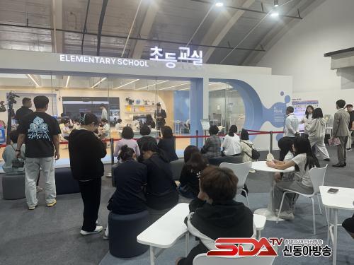 Ãʵ½Ç ¹ÛÀ¸·Î´Â ¹Ì·¡ ¼ö¾÷À» Á÷°üÇϱâ À§ÇØ ¿Â Çлý, Çкθð, ±³À°°ü°èÀÚµé·Î ºÏÀû¿´Áö¸¸, ¼ö¾÷¿¡ ¹æÇذ¡ µÇÁö ¾Êµµ·Ï Á¶½ÉÇß´Ù. Âü°ü°´µéÀº ±³½Ç ¹Ù±ù¿¡ ¸¶·ÃµÈ ½ºÅ©¸°À» ÅëÇØ ½Ç½Ã°£ ÇнÀÀڷḦ ¹Þ¾Æº¼ ¼ö ÀÖ¾ú´Ù. ƯÈ÷ ¼±»ý´Ô°ú ÇÔ²² ¹æ¹®ÇÑ 10¿© ¸íÀÇ À¯Ä¡¿ø»ýµéÀÌ 5³â µÚ ÀڽŵéÀÌ ÇнÀÇÒ ¹Ì·¡¼ö¾÷À» À¯½ÉÈ÷ ÁöÄѺ¸´Â ¸ð½ÀÀÌ ´«±æÀ» ²ø¾ú´Ù.