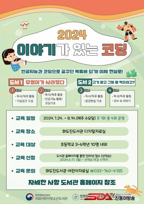 ¡®À̾߱Ⱑ ÀÖ´Â ÄÚµù¡¯Àº ±¹¸³¾î¸°ÀÌû¼Ò³âµµ¼°üÀÌ ÁÖ°üÇÏ´Â °ø¸ð »ç¾÷À¸·Î, ¾î¸°ÀÌÀÇ ¹®Çط°ú µðÁöÅÐ ¿ª·®À» Ű¿ì±â À§ÇØ µ¶¼¿Í ÄÚµù ±³À°À» ¿¬°èÇÑ ÇÁ·Î±×·¥ÀÌ´Ù. ´ã´ç »ç¼¿Í ÇÔ²² Ã¥À» Àаí, ÀΰøÁö´É°ú °¡»ó°ø°£À» Ȱ¿ëÇÑ ÄÚµù Àü¹® °»çÀÇ ¼ö¾÷À¸·Î ±¸¼ºµÈ´Ù.