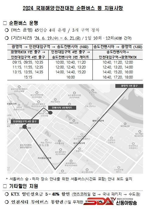 ÇØ¾ç°æÂûûÀº ¸¹Àº ±¹¹ÎµéÀÇ Âü¿©¸¦ À§ÇØ ±¤¸í¿ª ¹«·á ¼øÈ¯ ¹ö½º, KTX ÇÒÀÎ, ÀÎõ½ÃƼ Åõ¾î¹ö½º ÇÒÀÎ µî ´Ù¾çÇÑ Áö¿øÀ» Á¦°øÇϰí Àü½Ãȸ ¹× ¼¼¹Ì³ª ¾È³», »çÀüµî·Ï, ºÎ½º ¹èÄ¡µµ µî ÀÚ¼¼ÇÑ »çÇ×Àº ±¹Á¦ ÇØ¾ç‧¾ÈÀü´ëÀü ´©¸®Áý(www.koreaoceanexpo.com)À» ÅëÇØ °ü·ÃÁ¤º¸¸¦ È®ÀÎÇÒ ¼ö ÀÖ´Ù.