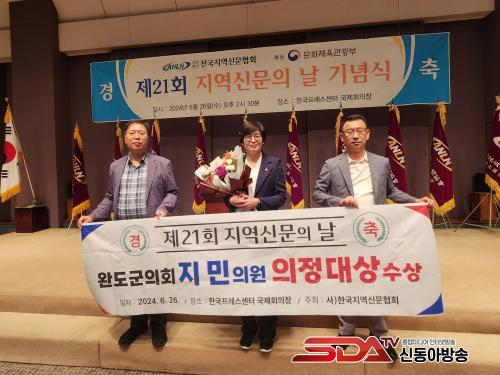 [½Åµ¿¾Æ¹æ¼Û=¿Ïµµ À̼±Á¾ ±âÀÚ] ¿Ïµµ±ºÀÇȸ Áö¹Î ÀÇ¿øÀÌ Áö³­ 26ÀÏ Çѱ¹ÇÁ·¹½º¼¾ÅÍ ±¹Á¦È¸ÀÇÀå¿¡¼­ ¿­¸° ¡®Á¦21ȸ Áö¿ª½Å¹®ÀÇ ³¯¡¯ ±â³ä½Ä¿¡¼­ ±âÃÊÀÇȸ ÀÇÁ¤´ë»óÀ» ¼ö»óÇß´Ù.