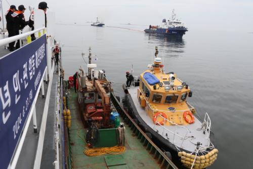ÆòÅᤴçÁøÇ׿¡ ÀÔÇ×ÇÏ´Â À¯Á¶¼±°ú ÃâÇ× ÁßÀΠȹ°¼±ÀÌ Ãæµ¹ÇÏ¿© ¼±Ã¼ÆÄ°øÀ¸·Î ÀÎÇÑ ±â¸§ º¡Ä¿CÀ¯ 30,000¸®ÅͰ¡ ÇØ»ó¿¡ À¯ÃâµÇ´Â »óȲÀ» °¡Á¤ÇÑ ¹Î¡¤°ü ÇÕµ¿ ÇØ»ó ÈÆ·ÃÀÌ´Ù.