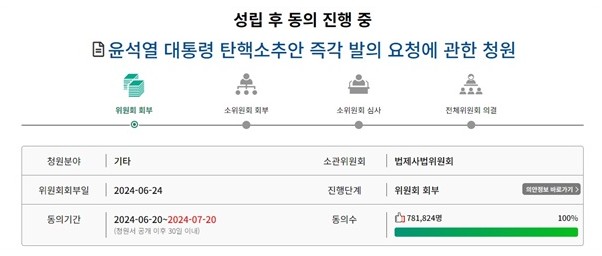 Áö³­´Þ 20ÀÏ 'À±¼®¿­ ´ëÅë·É źÇÙ¼ÒÃß¾È Áï°¢ ¹ßÀÇ ¿äû¿¡ °üÇÑ Ã»¿ø'Àº Á¢¼ö »çÈê ¸¸ÀÎ 23ÀÏ¿¡ ÀÌ¹Ì È¸ºÎ Á¶°ÇÀÎ 5¸¸ ¸íÀ» ÃæÁ·Çϸ鼭 ÁÖ¸ñÀ» ²ø¾ú°í,