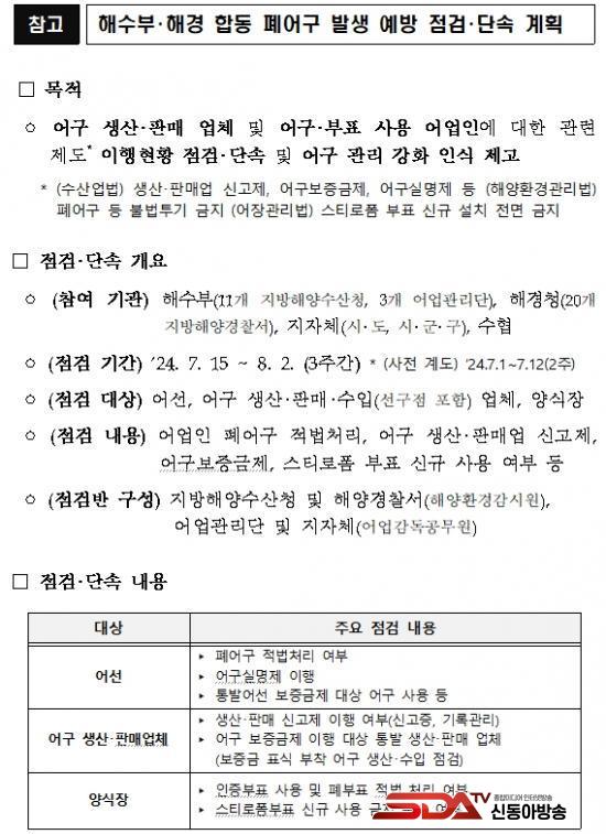 ÀÌ¿¡ Áö¹æÇؾç¼ö»êû, ¾î¾÷°ü¸®´Ü, ÇØ¾ç°æÂû¼, ÁöÀÚü µî °ü°è±â°ü ÇÕµ¿À¸·Î ¾î¼±¿¡¼ ¹ß»ýÇÏ´Â Æó¾î±¸ÀÇ Àû¹ýó¸® ¿©ºÎ¸¦ ÁßÁ¡ È®ÀÎÇϰí, ¾î±¸ »ý»ê¤ýÆÇ¸Å¾÷ ½Å°íÁ¦, ¾î±¸º¸Áõ±ÝÁ¦, ½ºÆ¼·ÎÆûºÎÇ¥ ½Å±Ô »ç¿ë ±ÝÁö µîÀÇ ¾î±¸・ºÎÇ¥ °ü¸®Á¦µµÀÇ ÇöÀå ÀÌÇà ½ÇÅÂÁ¡°Ë°ú ´Ü¼ÓÀ» º´ÇàÇÒ °èȹÀÌ´Ù.