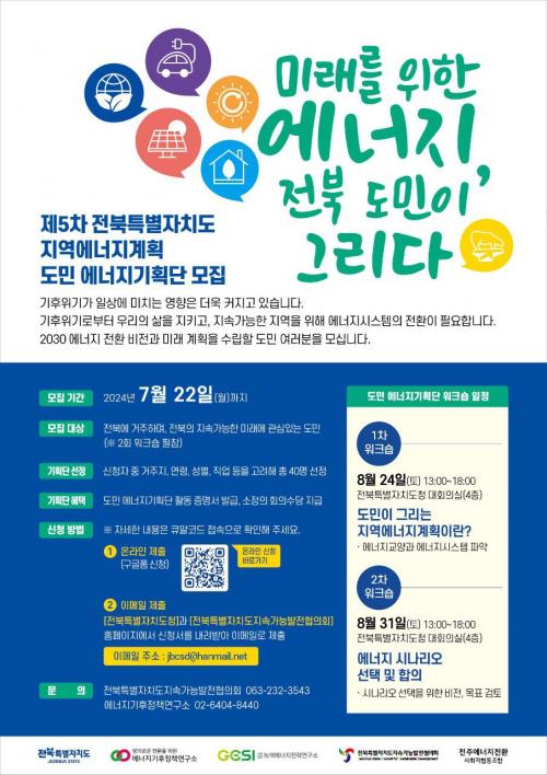 ÀÌÈÄ, µµ¹Î ¿¡³ÊÁö±âȹ´ÜÀº ¿À´Â 8¿ù 24ÀÏ, 8¿ù 31ÀÏ µµÃ» ´ëȸÀǽǿ¡¼ ¿¸®´Â ¿öÅ©¼ó¿¡ Âü¿©ÇØ ¿¡³ÊÁö½Ã½ºÅÛÀÇ ÇöȲÀ» ÆÄ¾ÇÇÏ°í ¿¡³ÊÁö ¹Ì·¡ ºñÀüÀ» °áÁ¤ÇÒ °èȹÀÌ´Ù.