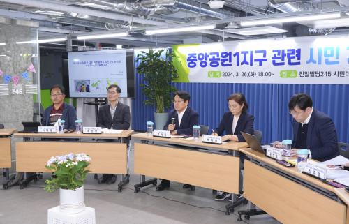 ±¤Áֽô Áö³ÇØ 1¿ù30ÀÏ Ã¹ ¹øÂ° ¼ÒÅëÀ» °¡Áøµ¥ À̾î Áö³ÇØ 7¿ù12ÀÏ 2Â÷ Åä·Ðȸ¿¡¼´Â dz¾ÏÈ£¼ö, º¹ÇÕ¼îÇθô, º¸À°´ëü±³»ç µî Áö¿ªÇö¾È¿¡ ´ëÇÑ ÇØ¹ýÀ» ¸ð»öÇÏ´Â ÀÚ¸®¸¦ °¡Á³´Ù. 3¿ù26ÀÏ¿¡´Â ¡®Áß¾Ó°ø¿ø1Áö±¸ °ü·Ã ½Ã¹Î°øÃ»È¸¡¯¸¦ ¿¾î ½Ã¹Î´Üü¿Í ³¡ÀåÅä·ÐÀ» ¹ú¿´´Ù.