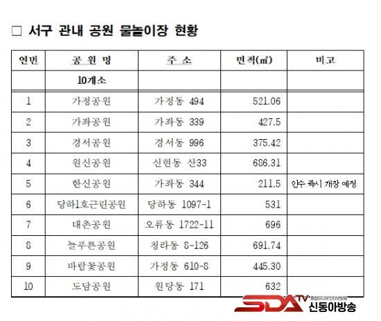 [½Åµ¿¾Æ¹æ¼Û ÀÎõ= À±¹Î½Ä±âÀÚ] ÀÎõ ¼­±¸(±¸Ã»Àå °­¹ü¼®)´Â ¸Å³â ´õ¿öÁö´Â Ȥ¼­±â¸¦ ´ëºñÇÏ¿© °ü³» °ø¿ø ¹°³îÀÌÀå 9°³¼Ò¸¦ 7¿ù 13ÀÏ ÀÏÁ¦È÷ °³ÀåÇÑ´Ù°í ¹àÇû´Ù. ÀÌ´Â Áö³­ÇØ ¹°³îÀÌÀå °³À庸´Ù 1ÁÖÀÏ ÀÌ»ó ¾Õ´ç±ä ½ÃÁ¡À̸ç, ÇöÀç ½Ã¼³¹° À̰ü ÁßÀÎ ¹°³îÀÌÀå 1°³¼Ò(ÇѽŰø¿ø)µµ ÀýÂ÷ ¿Ï·á Áï½Ã °³ÀåÇÒ ¿¹Á¤ÀÌ´Ù. ¼­±¸´Â ¿Ã¿©¸§ ÃÑ 10°³¼ÒÀÇ °ø¿ø ¹°³îÀÌÀåÀ» ¿î¿µÇÑ´Ù.