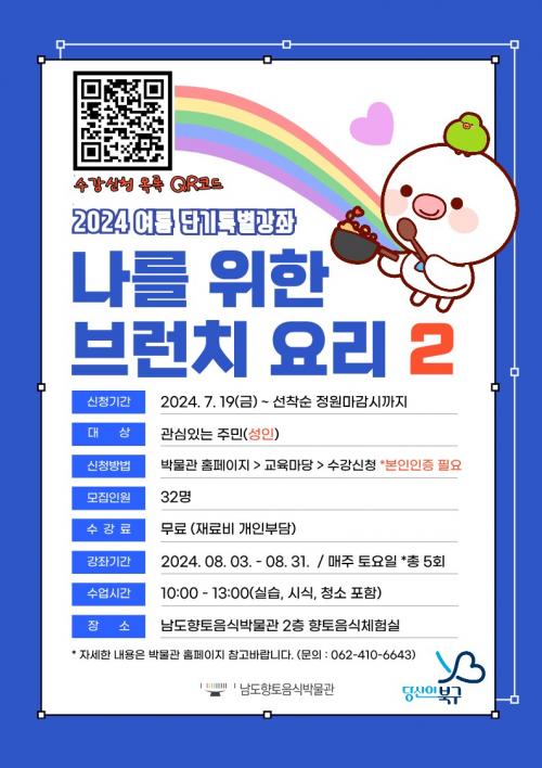 [½Åµ¿¾Æ¹æ¼Û=±èÀçÂù±âÀÚ] ±¤Áֽà ºÏ±¸(±¸Ã»Àå ¹®ÀÎ)°¡ ´ÙÀ½ ´Þ 3ÀϺÎÅÍ 31ÀϱîÁö ³²µµÇâÅäÀ½½Ä¹Ú¹°°ü 2Ãþ ÇâÅäÀ½½ÄüÇè½Ç¿¡¼­ ¡®¿©¸§ ´Ü±â Ưº° ºê·±Ä¡ ¿ä¸® °­Á¡¯¸¦ ¿î¿µÇÑ´Ù°í 16ÀÏ ¹àÇû´Ù.