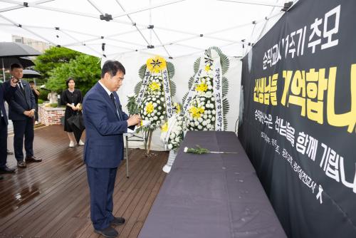 ÀÌÁ¤¼± ±¤Áֽñ³À°°¨, ¼øÁ÷±³»ç 1ÁÖ³â Ãß¸ð°ø°£ ã¾Æ ÇåÈ