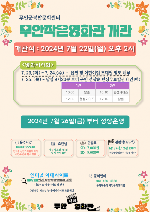 ¹«¾ÈÀÛÀº¿µÈ°üÀº 1°ü 77¼®, 2°ü 106¼® µî ÃÑ 183¼® ±Ô¸ðÀÇ »ó¿µ°ü°ú 2D»Ó¸¸ ¾Æ´Ï¶ó 3D ÀÔü ¿µÈ¸¦ °ü¶÷ÇÒ ¼ö Àִ ÷´Ü ½Ã¼³°ú ¿µ»ó Àåºñ¸¦ °®Ãß°í ÀÖ´Ù. ÆËÄÜ, À½·á¼ö, Ä¿ÇÇ µî ´Ù¾çÇÑ ¸Þ´º¸¦ Áñ±æ ¼ö ÀÖ´Â ¸ÅÁ¡µµ ÇÔ²² ¿î¿µÇÑ´Ù.