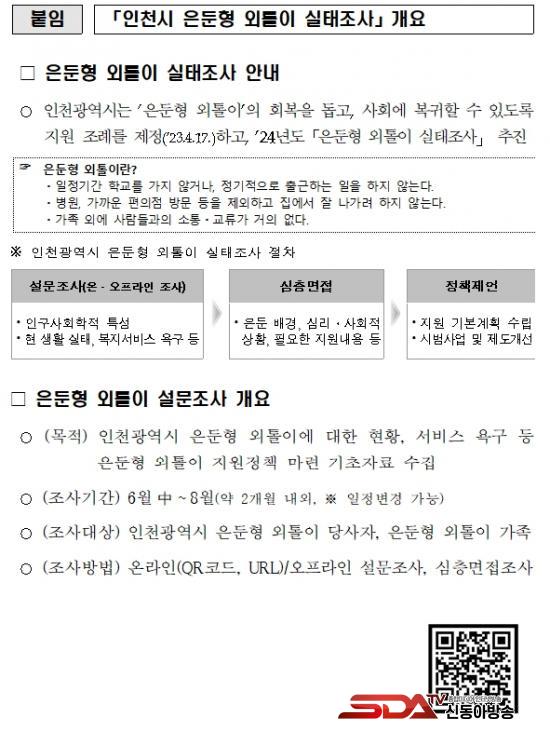 À̹ø Á¶»ç´Â 8¿ù 30ÀϱîÁö ÁøÇàµÇ¸ç ÀÎõ¿¡ °ÅÁÖÇÏ´Â ÀºµÐÇü ¿ÜÅçÀÌ ´ç»çÀÚ(19¼¼~64¼¼)¿Í °¡Á·À» ´ë»óÀ¸·Î ¹æ¹® Á¶»ç¿Í ¿Â¶óÀÎ Á¶»ç¸¦ º´ÇàÇÑ´Ù. Á¶»ç ³»¿ëÀº ÀºµÐÇü ¿ÜÅçÀÌ ÀϹÝÇöȲ, ÀºµÐ ¹è°æ, ÀÏ»ó»ýȰ, ÁÖ°Å»ýȰ, °Ç° »óÅ µîÀÌ´Ù.