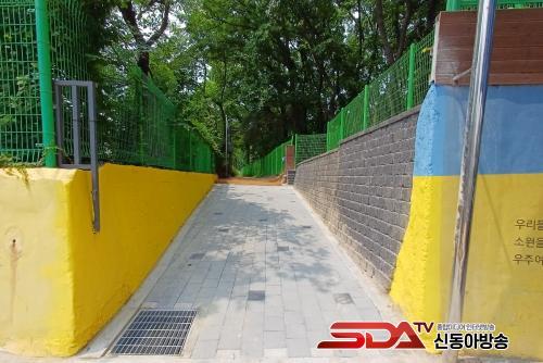 ±¸´Â ¸ÕÀú Á¼Àº »êÃ¥·Î ÀÔ±¸¸¦ ´ëÆø È®ÀåÇϰí Åä»ç À¯ÃâÀ» ¸·±â À§ÇØ Á¶°æºí·ÏÀ» ½×¾Ò´Ù. ¿ïÅüºÒÅüÇÑ ¹Ù´Ú¸éÀº »õ·Î Æ÷ÀåÇßÀ¸¸ç, È£¿ì½Ã ¾ÈÀü»ç°í µîÀ» ¸·±â À§ÇØ ¹è¼ö·Î¸¦ ¼³Ä¡Çß´Ù.