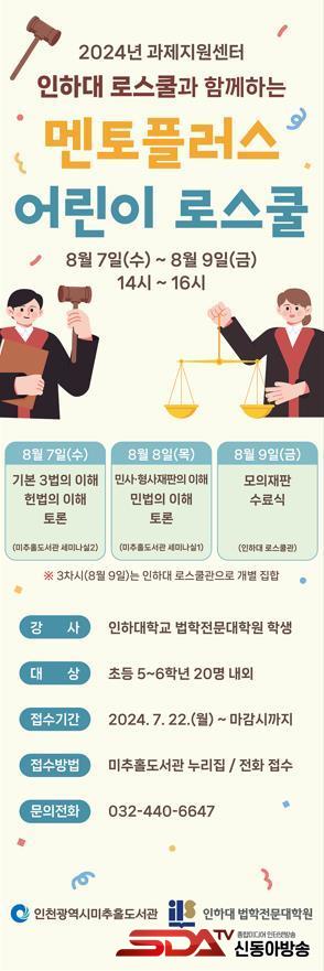 ±³À° ù° ³¯°ú µÑ° ³¯¿¡ µµ¼°ü ¼¼¹Ì³ª½Ç¿¡¼ ±âº» 3¹ýÀÇ ÀÌÇØ¿Í ÀçÆÇ µî¿¡ ´ëÇØ ¹è¿ì¸ç ¹ý·ü¿¡ ´ëÇÑ ÀÌÇØ¸¦ ³ÐÈ÷´Â ½Ã°£À» °®´Â´Ù. ¸¶Áö¸· ³¯¿¡´Â ÀÎÇÏ´ëÇб³ ¹ýÇÐÀü¹®´ëÇпø ·Î½ºÄð°ü¿¡¼ ¸ðÀÇÀçÆÇÀ» Á÷Á¢ ÁøÇàÇØ º¸´Â Ưº°ÇÑ Ã¼Çè ±âȸ¸¦ Á¦°øÇÑ´Ù.